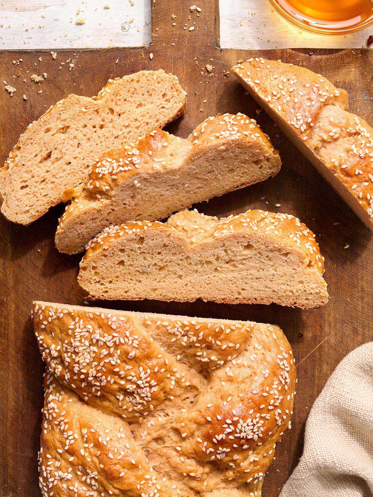 Cool completely. Transfer the challah to a wire rack and let it cool completely before slicing. This step is essential for gluten-free bread because the crumb continues to set as it cools. Cutting too early can result in a gummy interior.